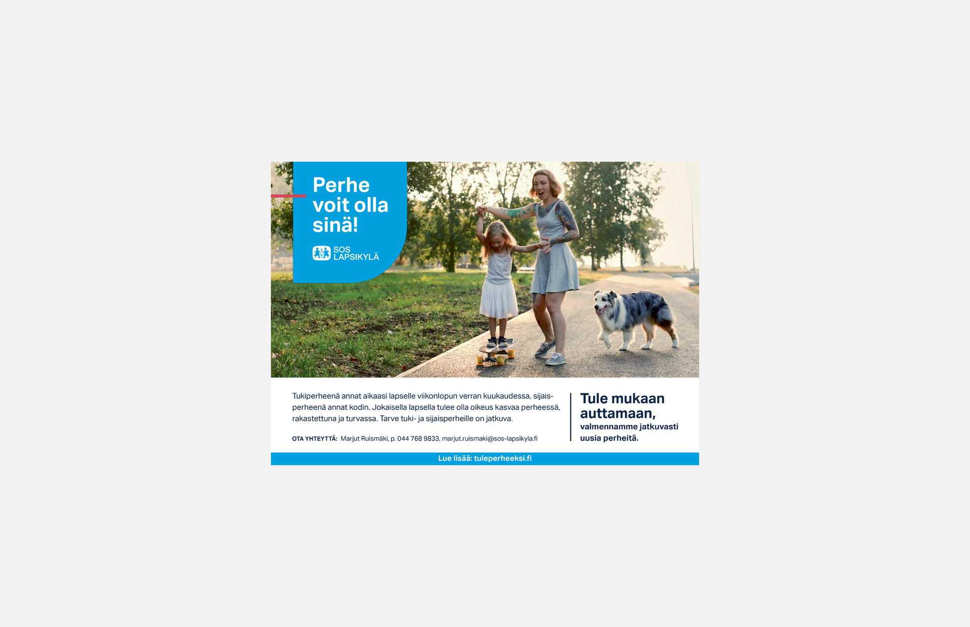 SOS-Lapsikylän Perhe voit olla sinä!-kampanjan lehti-ilmoitukset.