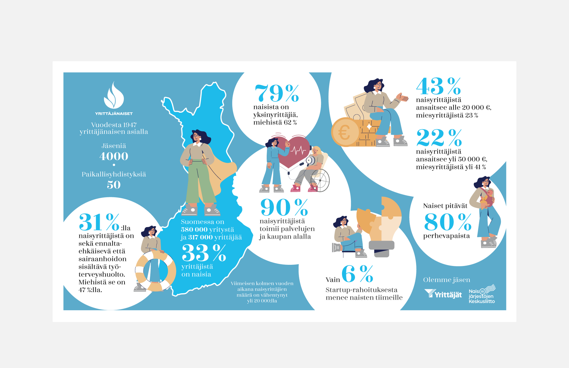 Suomen Yrittäjänaiset ry:n infografiikka Faktaa yrittäjänaisista